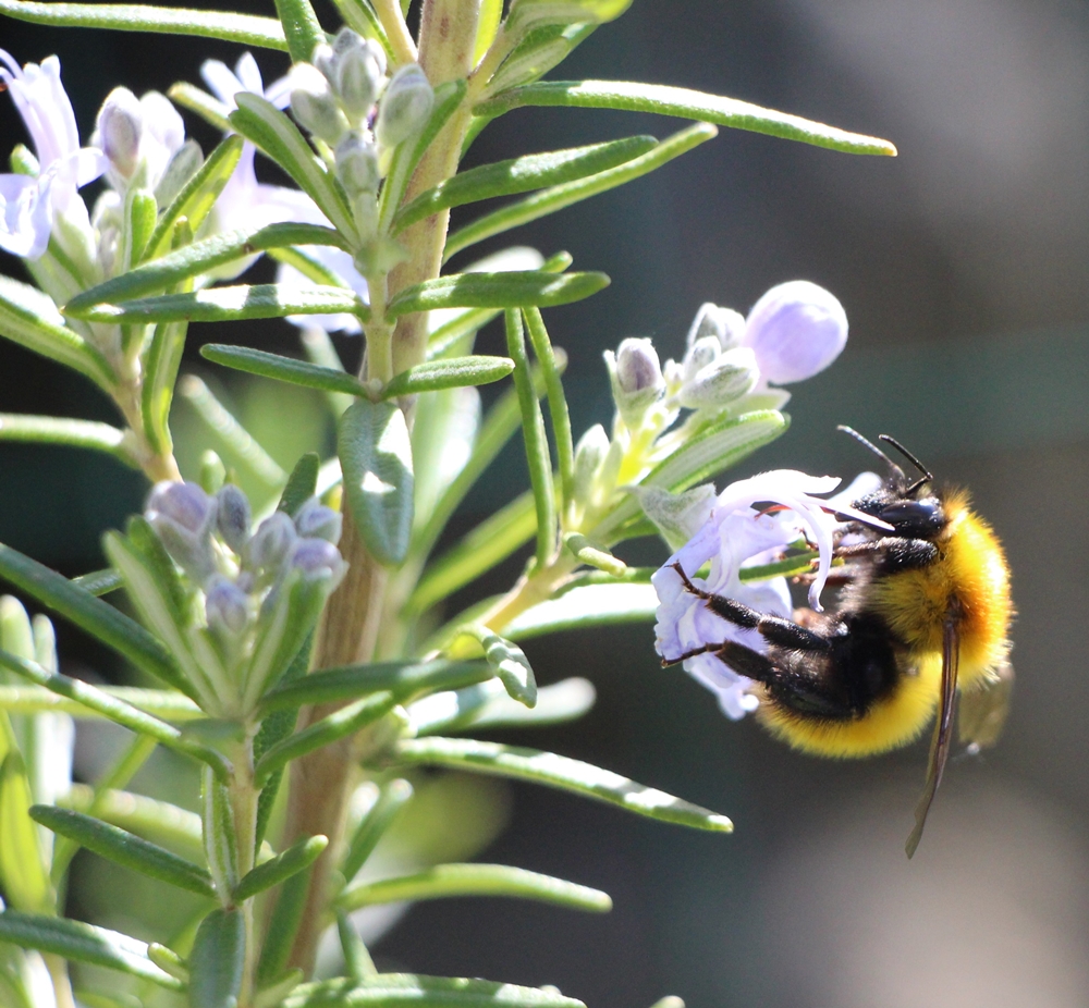 Gepflanzte Kräuter und Büsche sind Cistus salviifolius, Salvia Rosmarinus (Foto links), Teucrium frutican, Lavandula angustifolia, Origanum vulgare.
